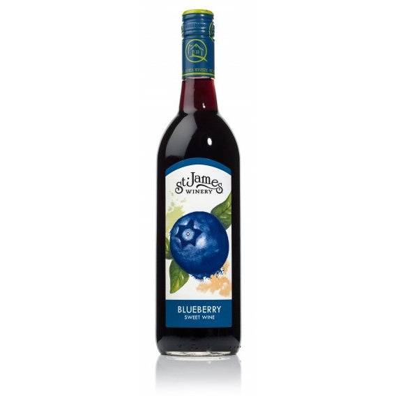 Naturally sweet and free of added colors or flavors, St. James Winery Blueberry wine is crafted with 100% pure, ripe blueberries. It is part of a collection of internationally awarded fruit wines from St. James Winery that are perfect for mixing in cocktails, cooking and baking, or simply enjoying.